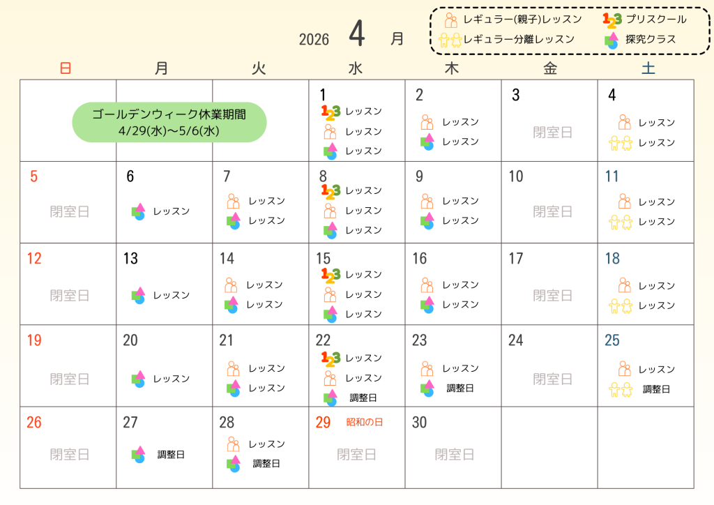 2026年4月のお教室スケジュール